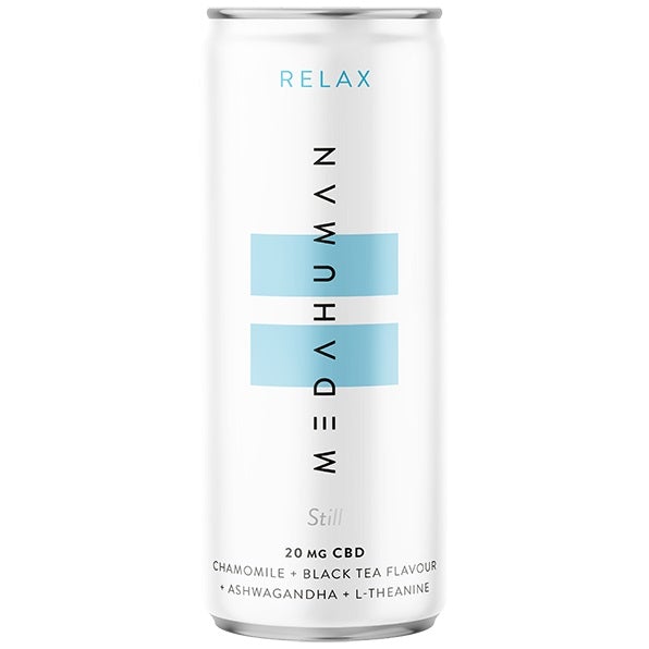 We work hard. We train hard. We play hard. A daily dose of MEDAHUMAN helps you stay calm, focused and centred. The RELAX MEDAHUMAN functional wellness drink eases anxiety and stress to help you unwind and find your centre. RELAX is a delicious and refreshing still drink with natural ingredients including chamomile, black tea, ashwagandha & L-theanine, crafted to work in synergy with the 20mg of CBD. Cannabidiol (CBD) is a non-intoxicating compound in the hemp plant with enormous health potential; it supports the body’s master regulator to create balance in the mind and body. Formulated by nutritionists, MEDAHUMAN drinks contain nutrients, adaptogens, nootropics & 20mg of CBD, which work synergistically to help people return to their optimal self. MEDAHUMAN drinks are 100% natural, vegan, gluten free & made in the UK. Each can is under 35 calories, with no artificial colours or flavourings. With MEDAHUMAN's targeted functional wellness drinks, you can enjoy balanced living while improving anxiety, mood, sleep, pleasure, pain, inflammation, immune system, memory and motor control.