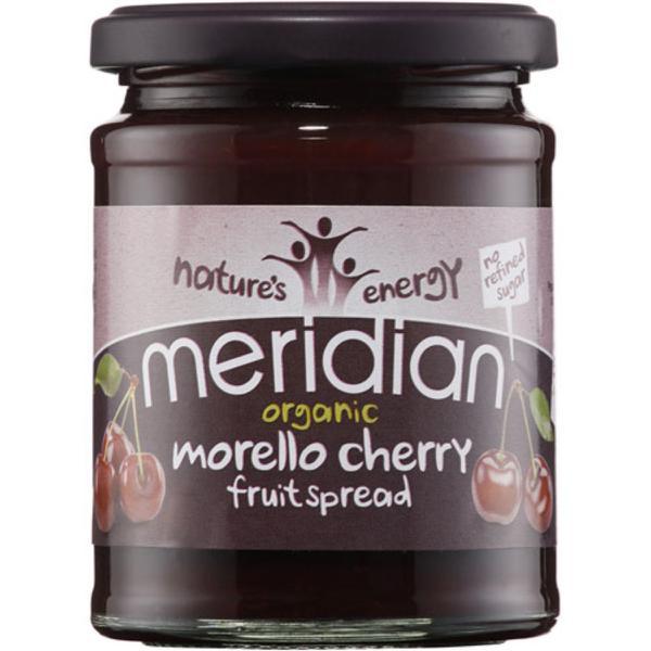 Organic morello cherry fruit spread. Sweetened with organic apple juice concentrate. Organic morello cherries are harvested and graded before being gently cooked in organic apple juice concentrate to produce a flavoursome lightly set spread. Delicious spread on bread and toast or stir into natural yogurt and muesli for additional flavour.