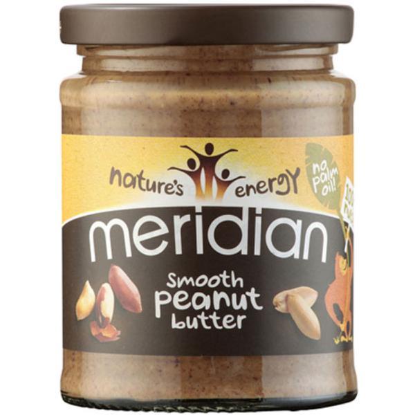 Meridian Organic Natural Smooth Peanut Butter is made from 100% peanuts which are roasted in their natural brown skins before being ground to a smooth texture with a small amount of sea salt. It contains naturally occurring sugar. Try it on crackers and crumpets, add to shakes, cakes and bakes.