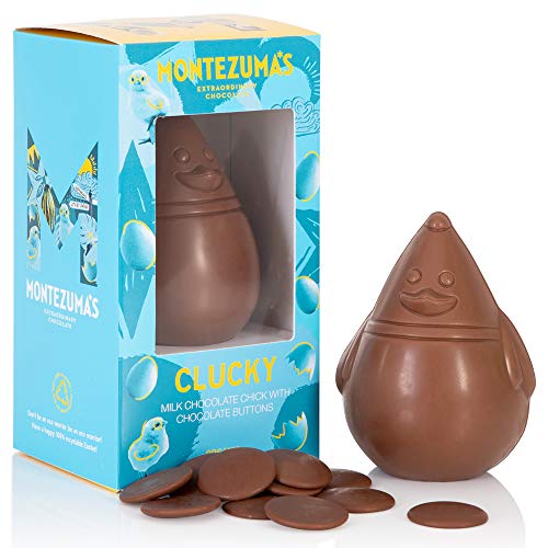 Montezuma's Easter, Clucky, Milk Chocolate Chick with Buttons, Gluten-free and Organic, 100g. Our cute Clucky, Lucky or Plucky chicks come complete with our best-selling chocolate buttons. Chick us out! Organic milk chocolate chick 75g & organic milk chocolate buttons 25g. Here at Montezuma's we have proudly made chocolate in the UK for the past 20 years. HAPPY PLANET HAPPY PEOPLE Since our foundation in 2000, we’ve worked to a set of principles we call ‘Trading Fairly’. These guide everything we do, from sourcing our cocoa, to developing our products, and working with our partners. We're passionate about finding ways to reduce our impact on our beautiful planet. We’re proud that all our packaging is 100% recyclable, bio-degradable or compostable at home.
