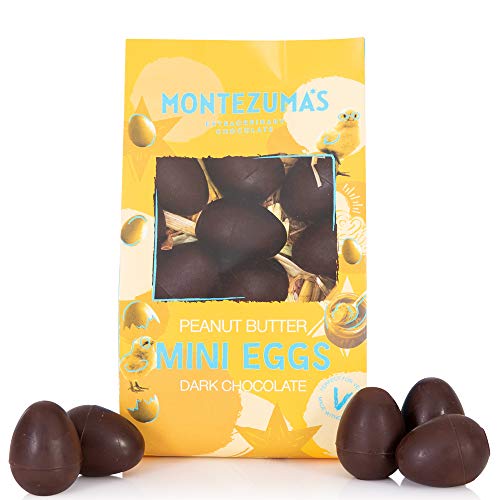 Montezuma's Easter, Dark Chocolate Peanut Butter Mini Eggs, Gluten-free and Vegan, 150g Bag, No ordinary mini eggs; our creamy chocolate peanut butter eggs will make you wish it was Easter every day! Available in milk, dark or absolute black 100% cocoa chocolate. Here at Montezuma's we have proudly made chocolate in the UK for the past 20 years. HAPPY PLANET HAPPY PEOPLE Since our foundation in 2000, we’ve worked to a set of principles we call ‘Trading Fairly’. These guide everything we do, from sourcing our cocoa, to developing our products, and working with our partners. We're passionate about finding ways to reduce our impact on our beautiful planet. We’re proud that all our packaging is 100% recyclable, bio-degradable or compostable at home.