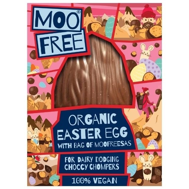 This decadent vegan chocolate Easter egg is a yummy milk organic egg with a bag of Moofreesas. Yum!