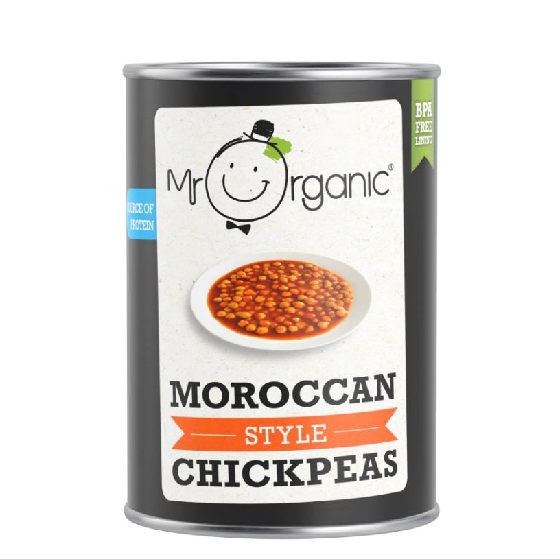 Inspired by the delicious flavours of Morocco! Organic Chickpeas coated in a rich tomato sauce with pumpkin, peppers and fragrant Moroccan spices. All of Mr Organic’s beans are produced in house and overseen by our specialist Bean Conesseur, Giovanni! Carefully selected, washed, cooked & packed in our BPA free tins in Italy with no added sugar or salt. All Mr. Organic food is made with organically grown ingredients and love for our planet.