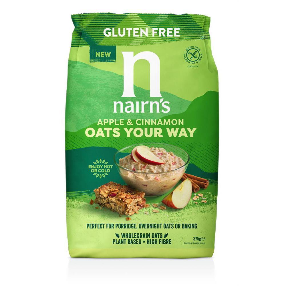 OATS YOUR WAY Apple and Cinnamon contains wholegrain gluten-free Nairn’s oats blended with real apple pieces and a sprinkling of cinnamon. It’s deliciously flavoursome with a hint of spiced apple crumble – add a few nuts and a dollop of plain yogurt for a fantastically filling warm or cold bowlful or add a fruity flourish to muffins and flapjacks.