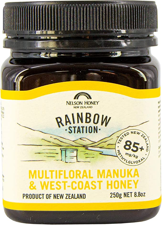 Rainbow Station Manuka Honey and West Coast 85+ Blend has its own special flavour. It is tested and d to the stated MG level in every batch. 85+ Grading system means it contains more than 85mg per kg of Methylglyoxal (MG). Manuka honey is collected by honeybees from the Manuka flower. The honeybees collect and transform the nectar of the Manuka plant into honey.