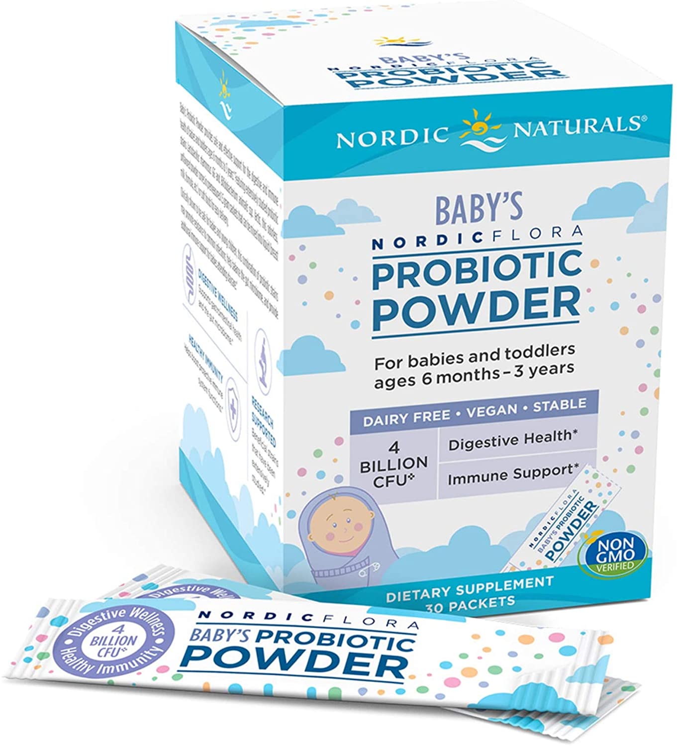 Baby's Nordic flora probiotic powder provides convenient digestive support for little ones with widely researched probiotic strains that are shown to be safe and effective for developing babies and young children.4 billion clinically shown to be safe for babies and young children (ages 6 months ? 3 years)no refrigeration neededunflavored, sugar-free probiotic powderallergen freenon-gmo and Vegan.