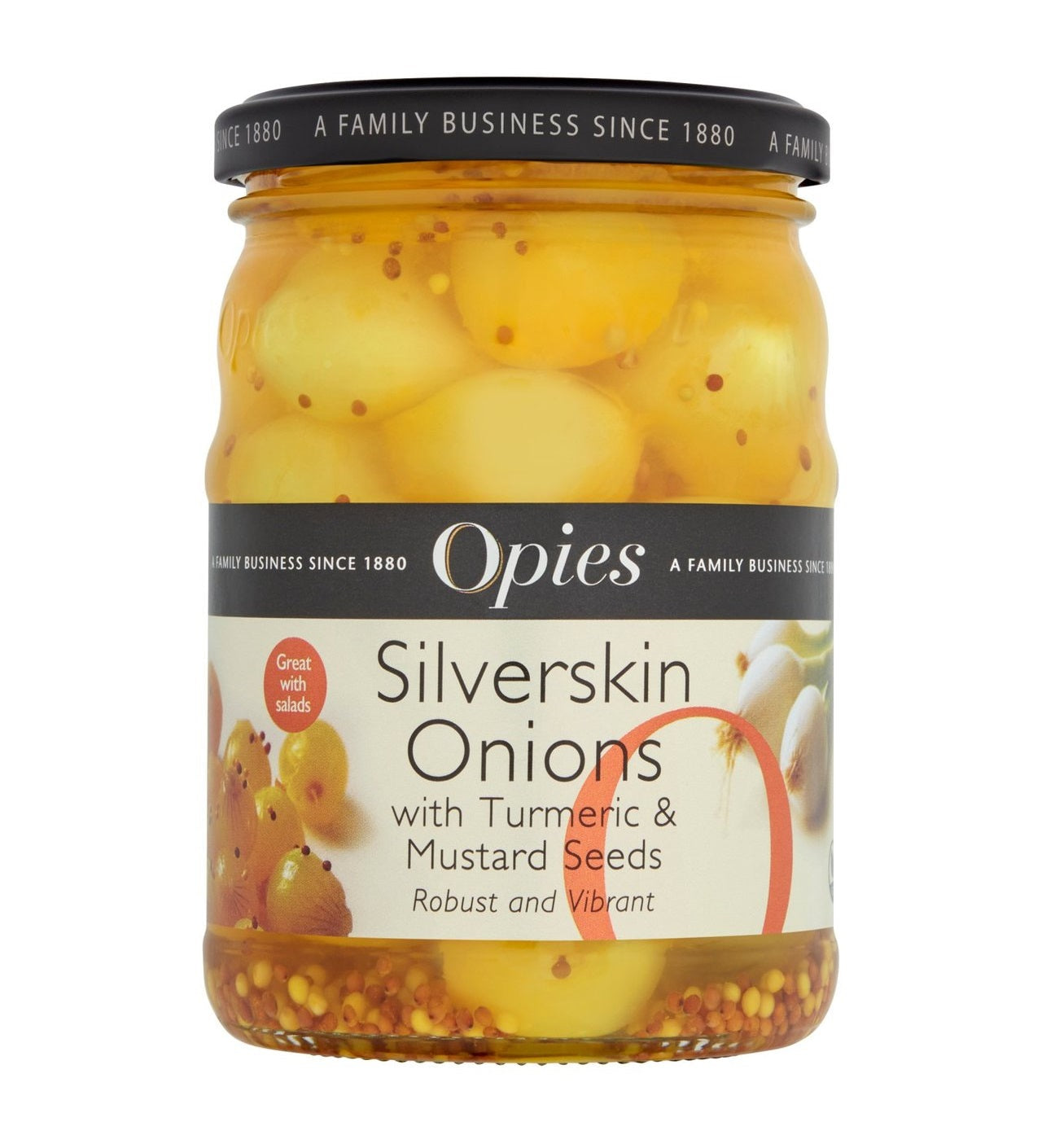 Opies Silverskin Onions with Turmeric & Mustard Seeds 370g (Pack of 6)