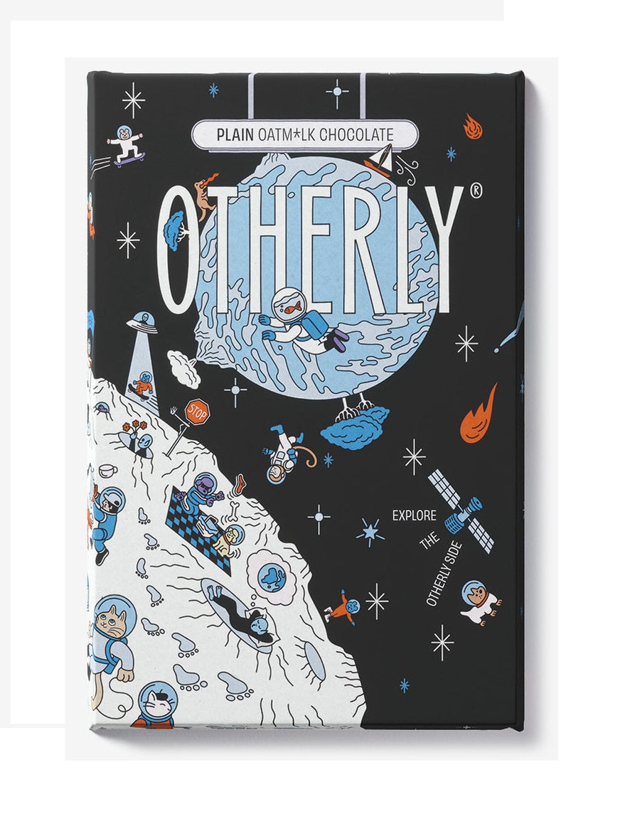 OTHERLY Plain Oatm*lk is a bar of plant-based chocolate with 43% cacao content made with fine flavour cocoa beans from Colombia and oat powder; this chocolate exposes exceptional roasted cacao notes and distinctive sweetness, that enhances delicate and authentic biscuity and cereal notes of oats, making this vegan chocolate an indulgent and creamy one-of-a-kind product.