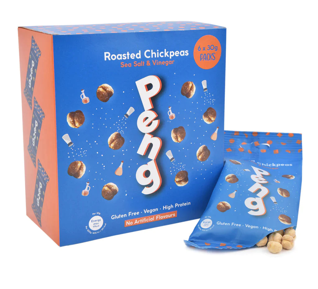 Craving a tasty and healthy snack? Look no further than Peng Sea Salt & Vinegar Chickpeas! This multipack comes with 6 convenient 30g pouches, perfect for popping in your bag for a satisfying nibble anytime, anywhere. delicious, healthy, and convenient way to satisfy your cravings and fuel your day. So go ahead and give them a try!
