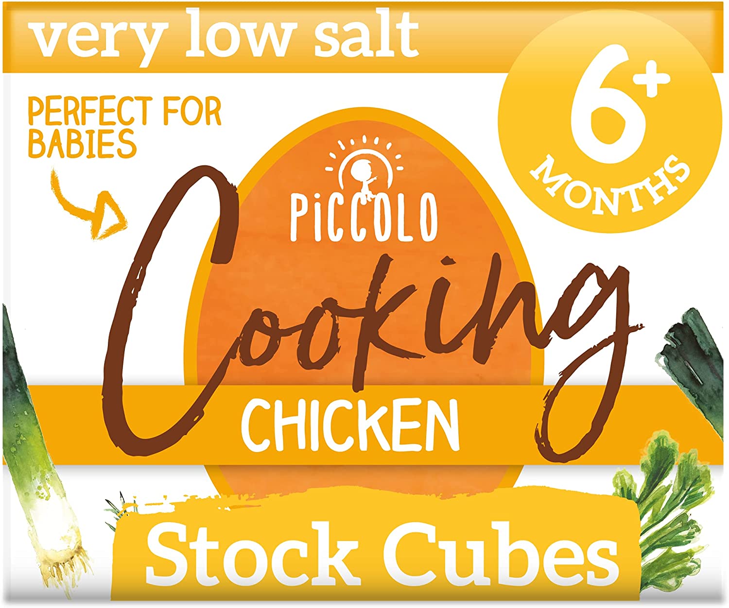 Piccolo Stage 1 Cooking chicken stock cubes. 100% organic with very low salt and no palm oil chicken stock cubes. It is perfect for home cooking. Perfect for babies. Healthy, very tasty meals and snacks to help you get the balance right everyday. Made by a family who know what growing families are like.