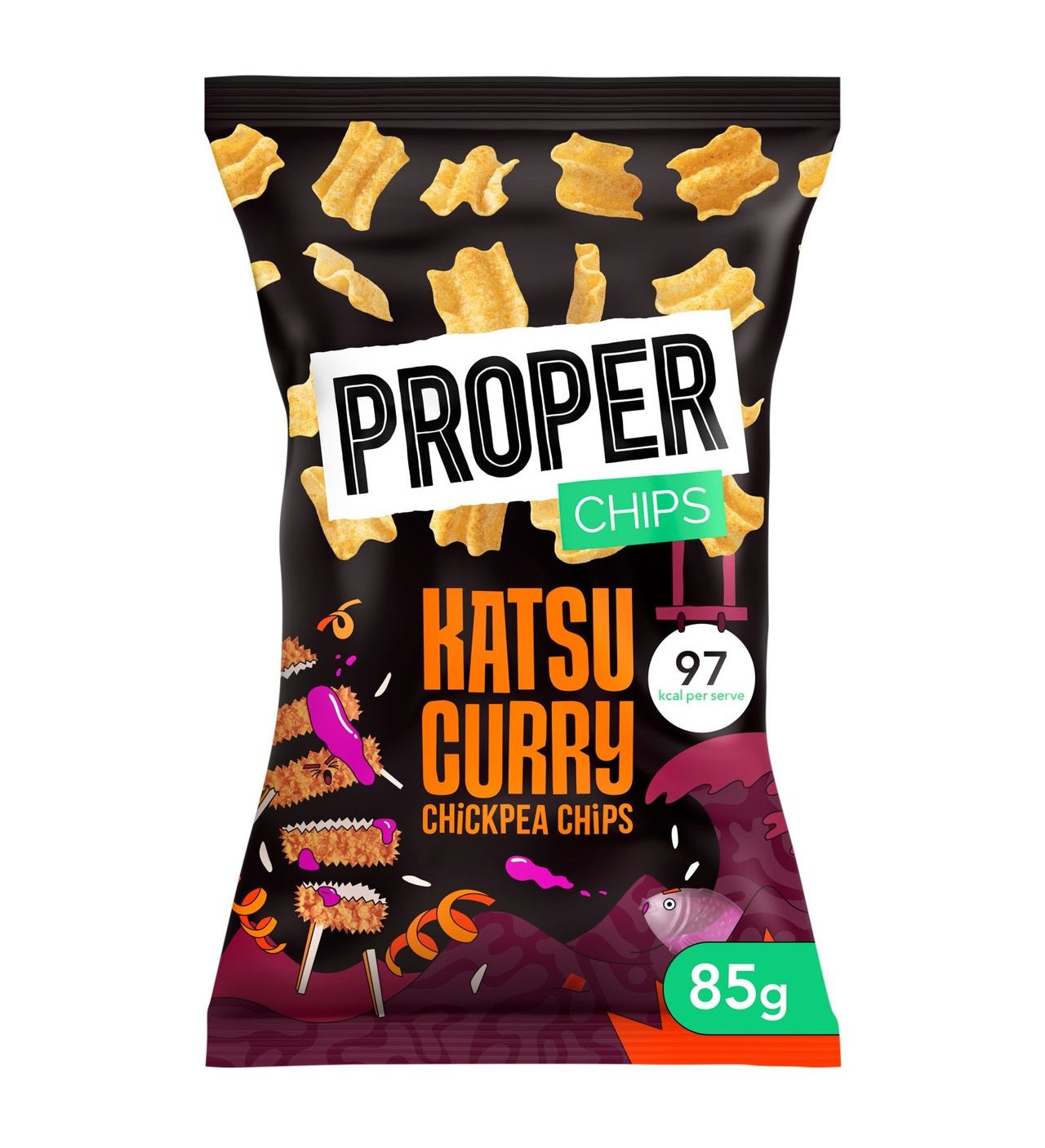 Craving a delicious and satisfying snack with an Asian twist? Look no further than Properchips Katsu Curry Chickpea Chips (85g)! These unique chips combine the comforting flavors of Japanese Katsu Curry with the wholesome crunch of chickpeas, offering a delightful and guilt-free snacking experience.