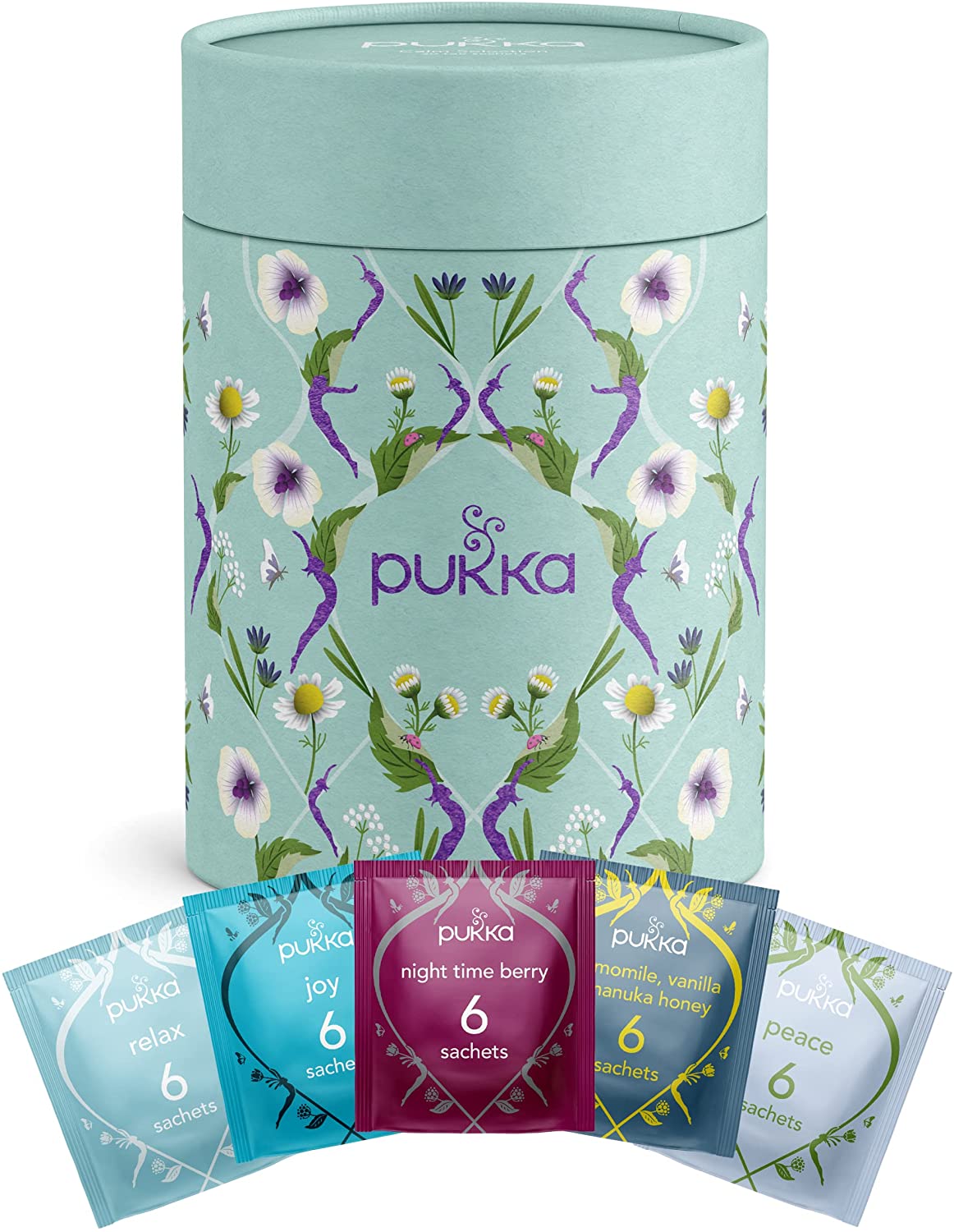 A selection of Pukka’s most-loved calming teas in this beautifully designed Calm Collection. The perfect gift for tea lovers, the collection includes Pukka’s favourite teas to help you unwind. Chamomile, Vanilla and Manuka honey and Joy to give you the warmth you need, whilst Night Time Berry soothes you to sleep. Then add Peace and Relax to help bring some tranquillity to your busy schedule. Made with premium card this beautiful gift is recyclable and the tea bags are home compostable.