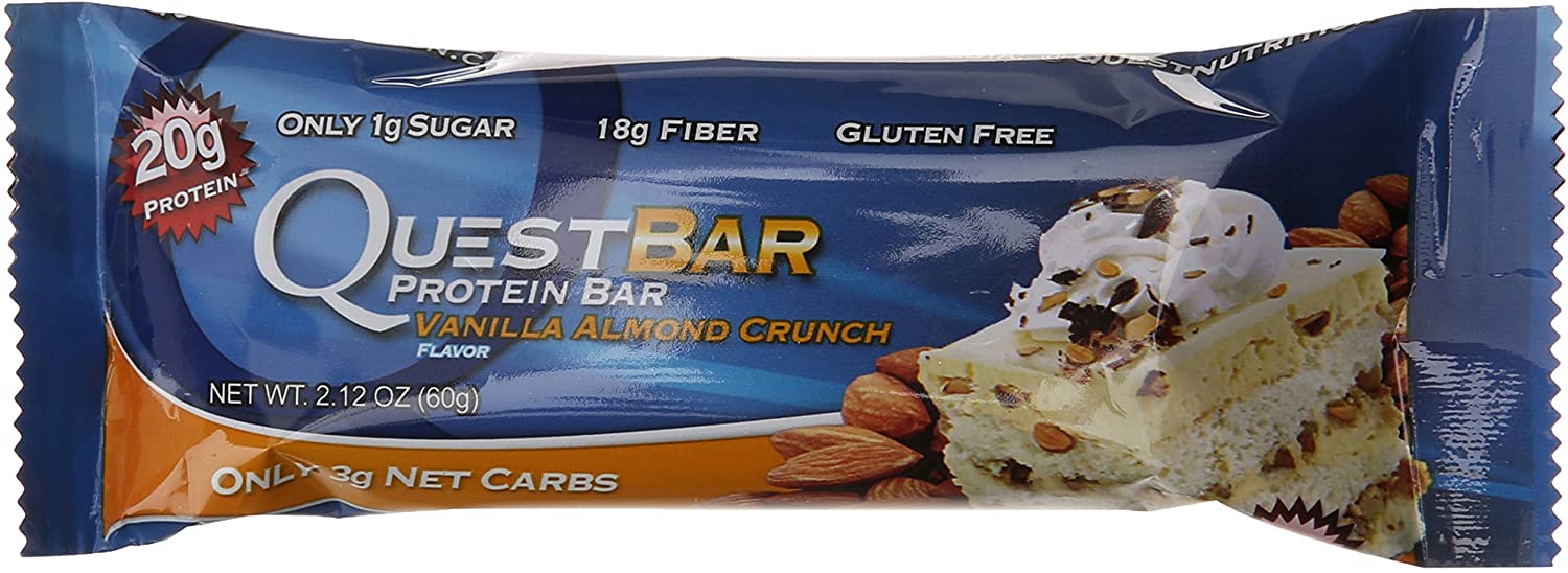 Rich with fibers, these Quest protein bars will keep you energized throughout the entire day. It's a delicious food packed with protein that makes no compromises. Quest Nutrition Vanilla Almond Crunch Protein Bars are available in a convenient pack of 12.