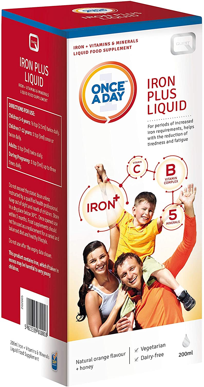 Provides iron with synergistic nutrients, vitamin C, vitamins B2, niacin, B6, B12, pantothenic acid and folic acid. Helps reduce tiredness and fatigue and alleviates symptoms of iron deficiency and anaemia. Iron plays a role in the transport of vital oxygen around the body and in the formation of red blood cells. Women of child bearing age have a higher risk of low iron levels due to the menstrual cycle. Iron supplementation is also recommended to prevent iron deficiency anaemia in pregnancy.