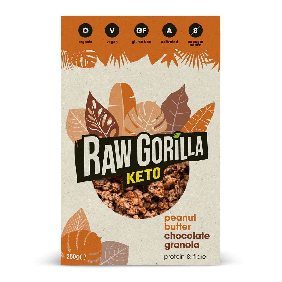 Indulge in the irresistible combination of nutty peanut butter and rich, dark chocolate with Raw Gorilla's Peanut Butter Chocolate Granola. This wholesome and keto-friendly granola is crafted with 100% natural ingredients, including activated sunflower seeds, creamy peanut butter, crunchy pumpkin seeds, and flaxseeds for a boost of fiber and omega-3 fatty acids.
