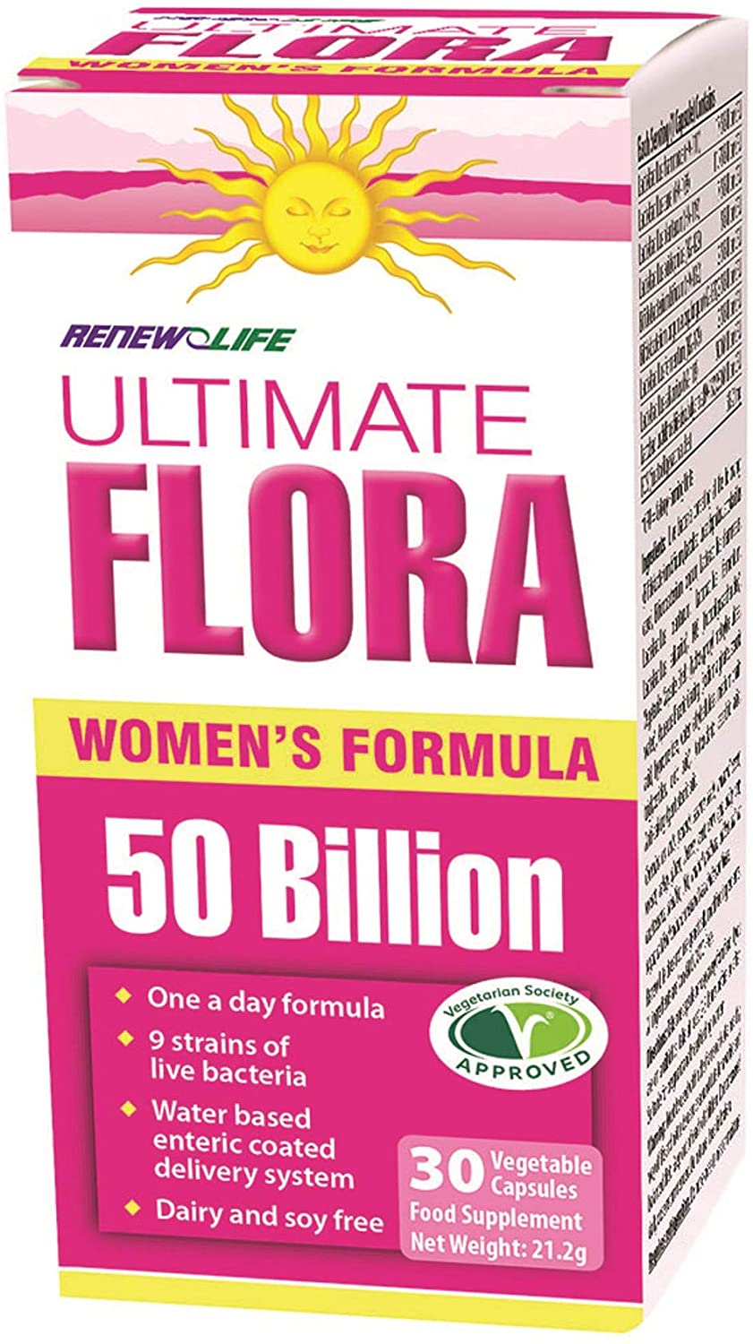 Renew Life Ultimate Flora Everyday Plus Women has been specifically formulated and scientifically studied for Women. Each capsule contains 45 billion Lactobacillus cultures and 5 billion Bifidobacteria cultures. Many beneficial bacteria do not survive the high acid environment of the stomach. For this reason Ultimate Flora friendly bacteria supplements have a delayed release capsule proven to ensure the bacteria are not destroyed in the stomach and arrive alive to the alkaline intestinal tract where they are released.