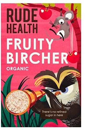 Rude Health Organic Fruity Bircher is an organic fruity Bircher for children. Made with chopped fruits and delicious oats. Enjoy this Fruity Bircher two ways: as Mouse’s apple, raisin and banana Bircher (add your favorite milk straight from the fridge) or as Owl’s fruity porridge (ask a grown-up to add hot milk).