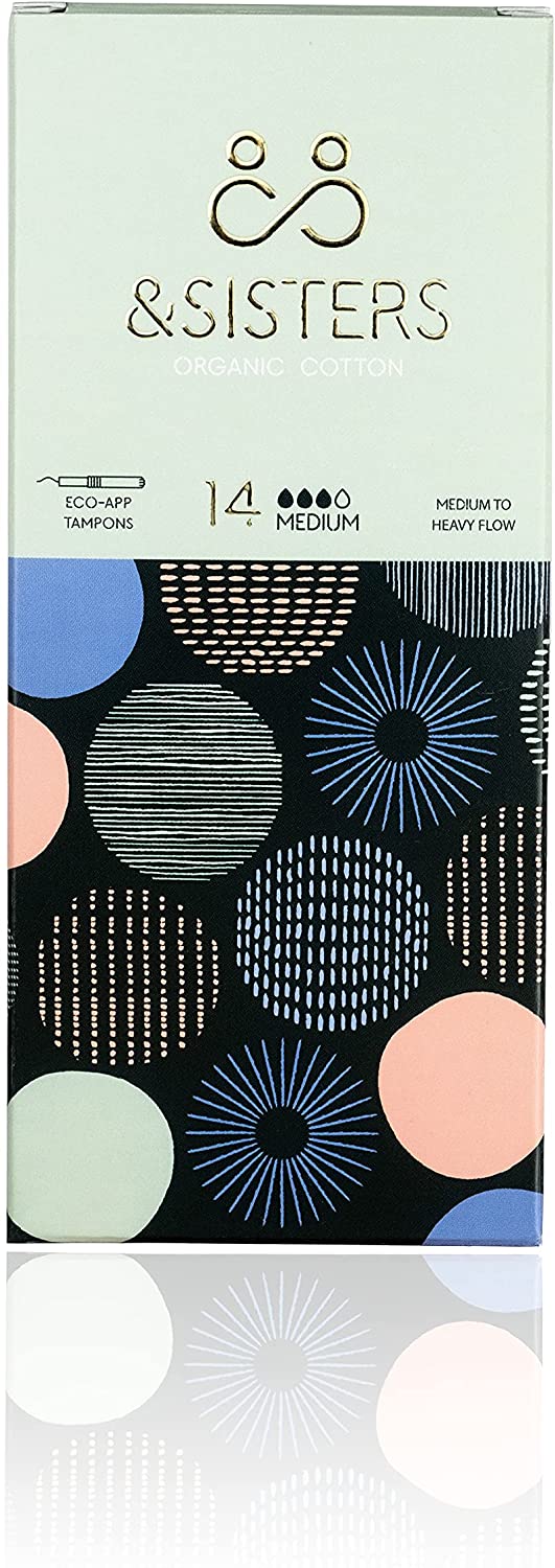 &Sisters Organic Cotton Medium Eco-Applicator Tampons is ethically sourced cotton, grown without chemical fertilisers, herbicides or pesticides. It contains zero synthetics, chlorine bleach, dyes or perfumes. Made with a soft breathable veil to prevent fibre shedding making them ideal for sensitive skin types. Design for all-round expansion, maximum absorbency & leak-free protection.