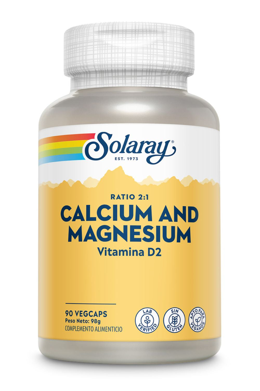 Solaray Calcium and Magnesium Ratio 2:1 with Vitamin D - Lab Verified - Vegan - Gluten Free - 90 VegCaps