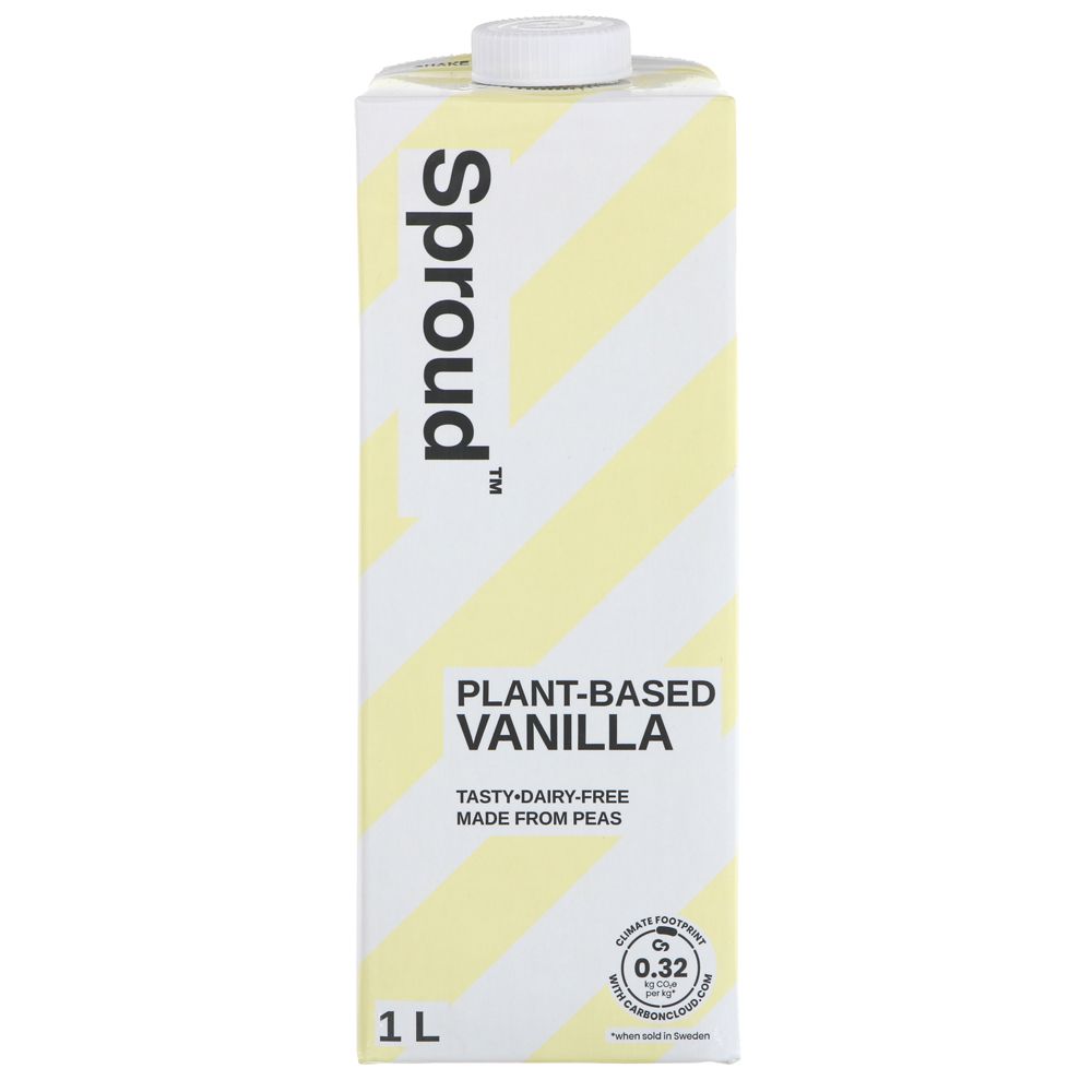 Water, sugar, protein from pea (1,9%), rapeseed oil, acidity regulator (dipotassium phosphate), calcium carbonate, natural aromas, calcium phosphates, vanilla extract, salt, gluten free oat oil, vitamins [riboflavin, vitamin d, vitamin b12].
