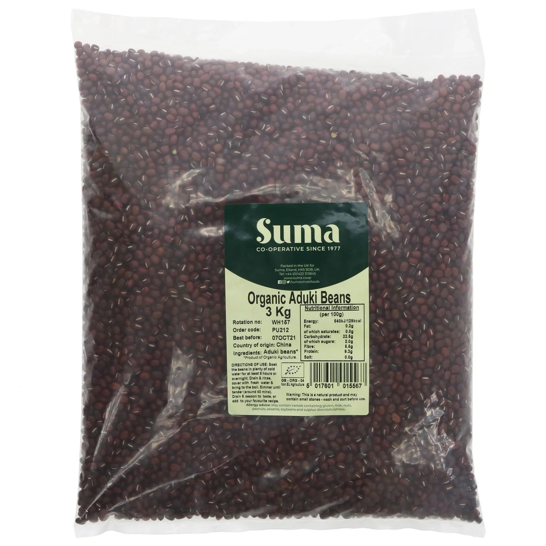 Suma Bagged Down Organic Aduki Beans Organic is a high-quality pack of organic aduki beans, perfect for those who want to enjoy the health benefits and delicious flavor of this versatile legume. These beans are grown using only organic farming methods, without the use of any synthetic pesticides or fertilizers, ensuring a natural and sustainable product. Aduki beans are known for their sweet, nutty flavor and tender texture, making them a popular ingredient in many Asian dishes such as soups, stews, and salads.