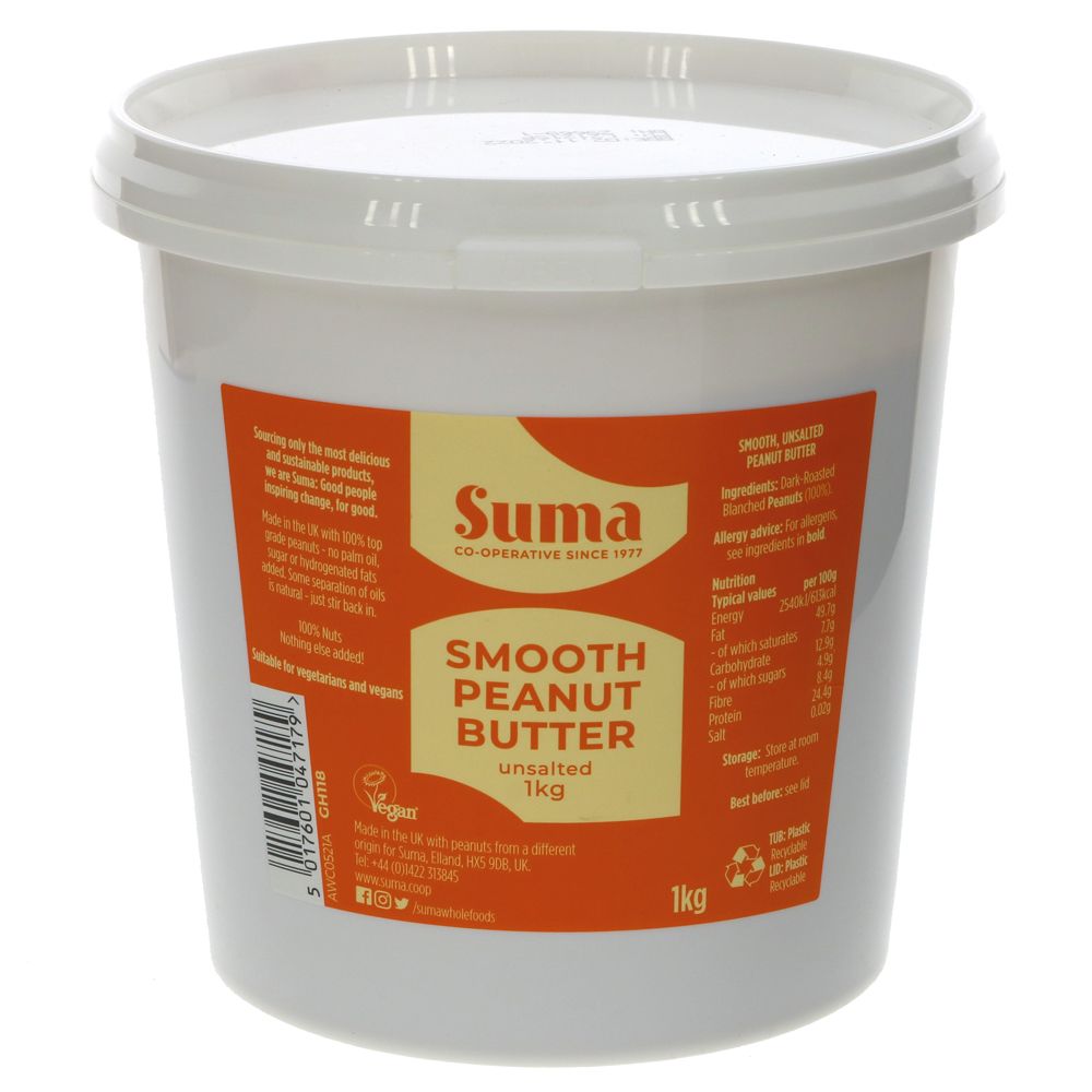 Suma 100% Peanut Butter.Made in the UK. No palm oil, sugar or hydrogenated fats added - just top grade, quality, peanuts. Some separation of oils is natural - just stir back in. A co-operative of ordinary people built on integrity and equality for more than 40 years. We're committed to sourching the most delicious and sustainable products, inspiring change for good.