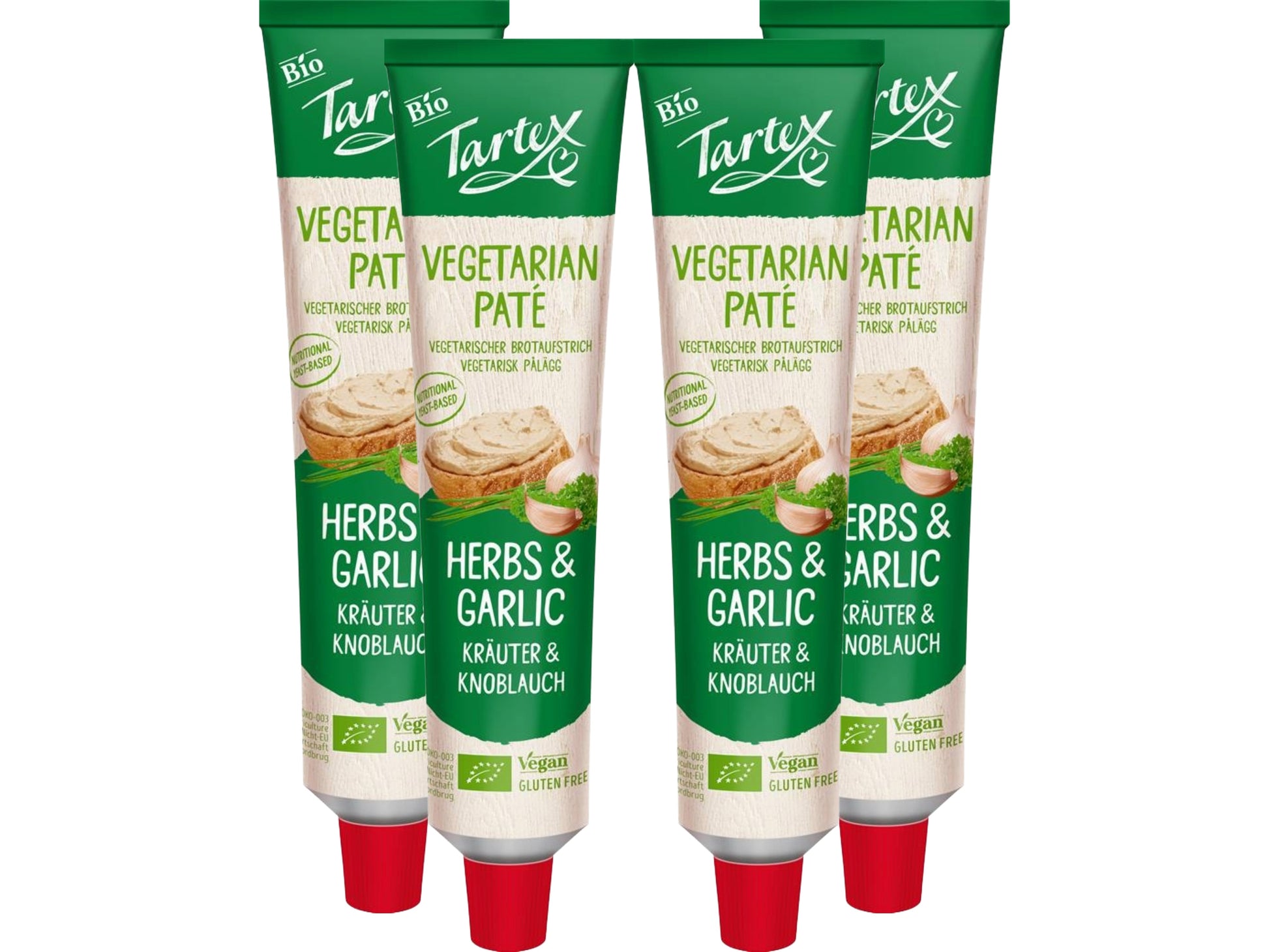 Tartex Organic Yeast Pate with Herb & Garlic 200g | Vegetarian Nutritional Yeast Spread | Organic, Plant-Based Sandwich, Crackers & Toast |(Pack of 4) from SuperfoodUK