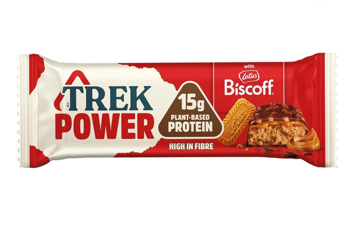 The Iconic Biscoff® Meets Protein-Packed Trek Power! Delicious Vegan High Protein Bar With A Smooth Biscoff® Spread Layered Filling, Packed With 15G Plant-Based Protein And Soya Protein Crunchies For That Classic Power Crunch, Covered In A Natural Chocolate Alternative- For Natural Energy That Keeps You Going!