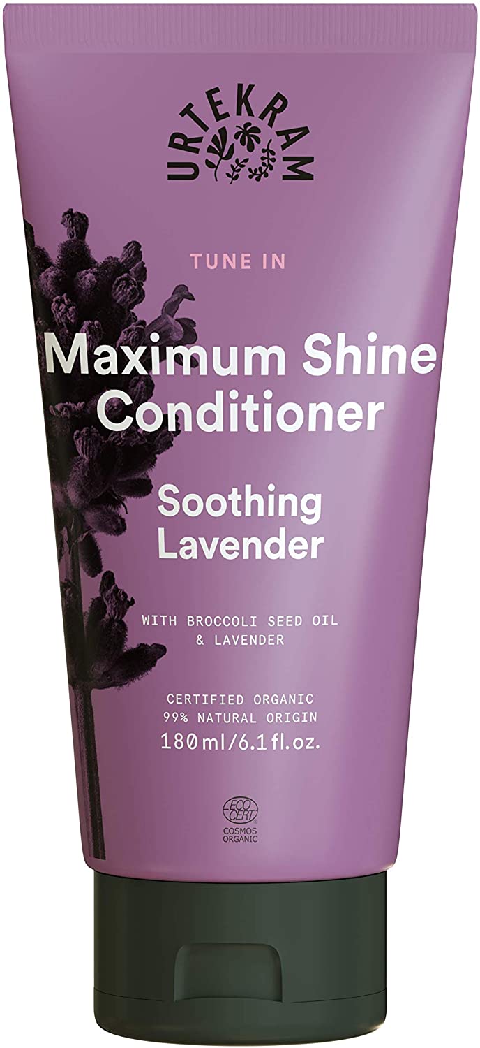 Urtekram Maximum shine A revitalizing conditioner for normal hair. Enriched with lavender and nourishing Broccoli seed oil that will help the hair become smooth, shiny and easy to brush. With a fresh scent of soothing lavender. Apply to damp hair and rinse. Certified by Ecocert cosmos organic, vegan, and with 99 % natural origin.