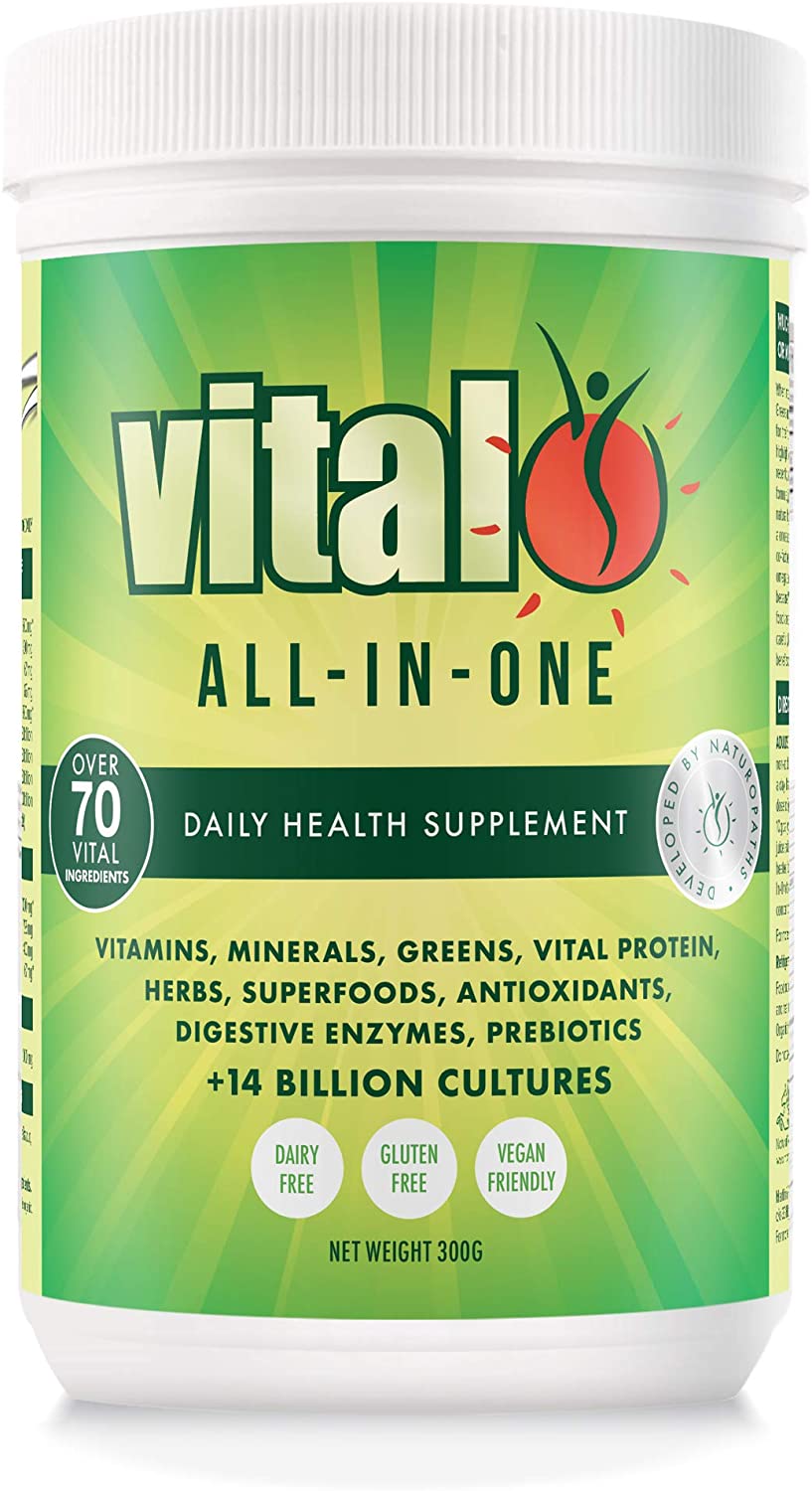 Vital Greens is a carefully balanced blend of nutritionally potent and nutrient-dense greens, vegetables and fruits--plus additional herbs, natural minerals, powerful antioxidants, probiotics for intestinal health, essential amino acids, essential fatty acids (omegas 3, 6 and 9), digestive enzymes, cell pigments, plant sterols and fibres. The ingredients are correctly proportioned to work in synergy for maximum effect; they provide optimum nutrient levels to help improve detoxification, aid digestion, build immunity and deliver energy and vitality to every cell in your body.