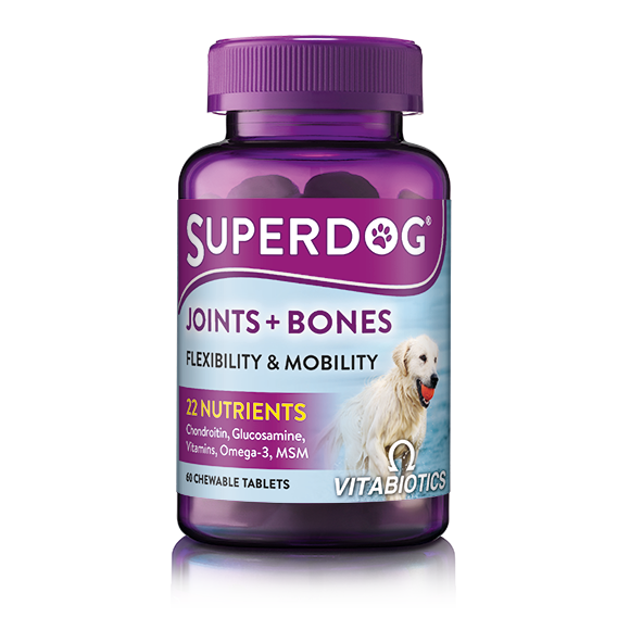 From daily exercise to long walks, SuperDog Joints & Bones is designed to support your dog’s nutrition with specific vitamins and minerals to promote joint, bone and dental health.