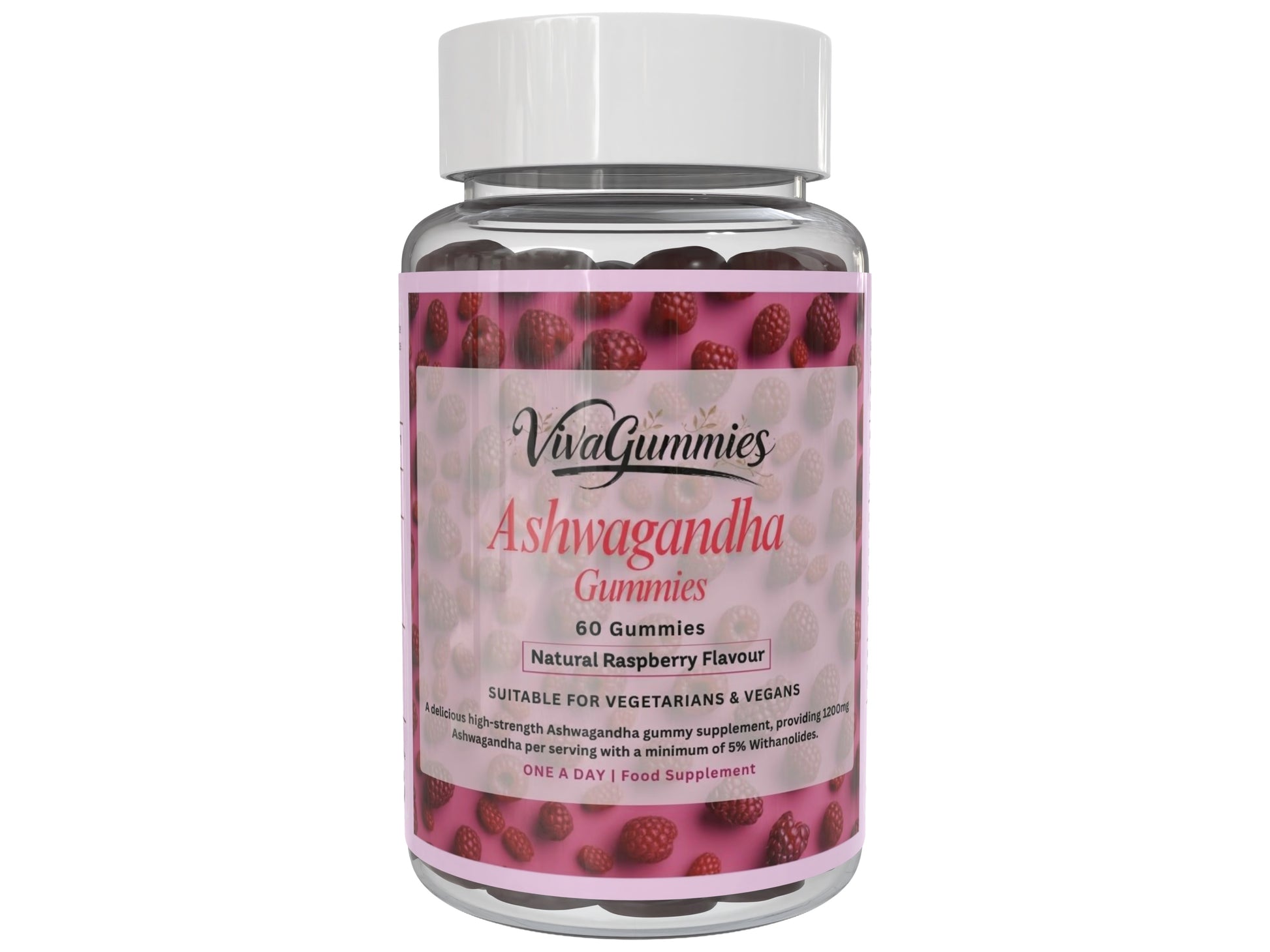 VivaGummies Ashwagandha Gummies 600mg High Strength With 5% Withanolides, Natural Raspberry Flavour | Energy, Mood & Stress Support | Vegan, Gluten-Free, Non-GMO | 60 Chewable Gummies