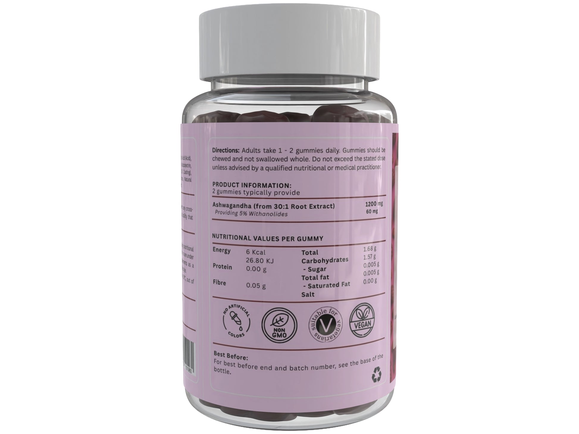 Delicious Natural Raspberry Flavour: Enjoy your daily Ashwagandha with a tasty, chewable gummy format, perfect for on-the-go supplementation without the need for capsules or powders.