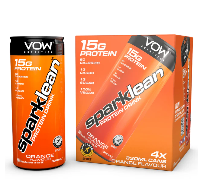 Vow Nutrition SparkLean Orange offers a burst of citrusy refreshment alongside a convenient protein boost. This 330ml beverage is packed with flavor and protein, making it a delicious and functional choice for athletes, fitness enthusiasts or anyone seeking a healthy and hydrating drink.