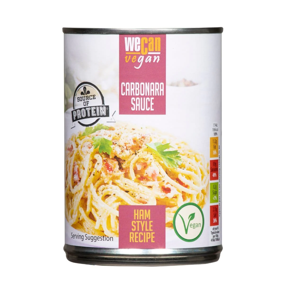 A yummy rich carbonara sauce made with creamed coconut, plant-based ham and soy "cheese". A great source of protein. It is a quick and easy meal that is perfect for busy weeknights.