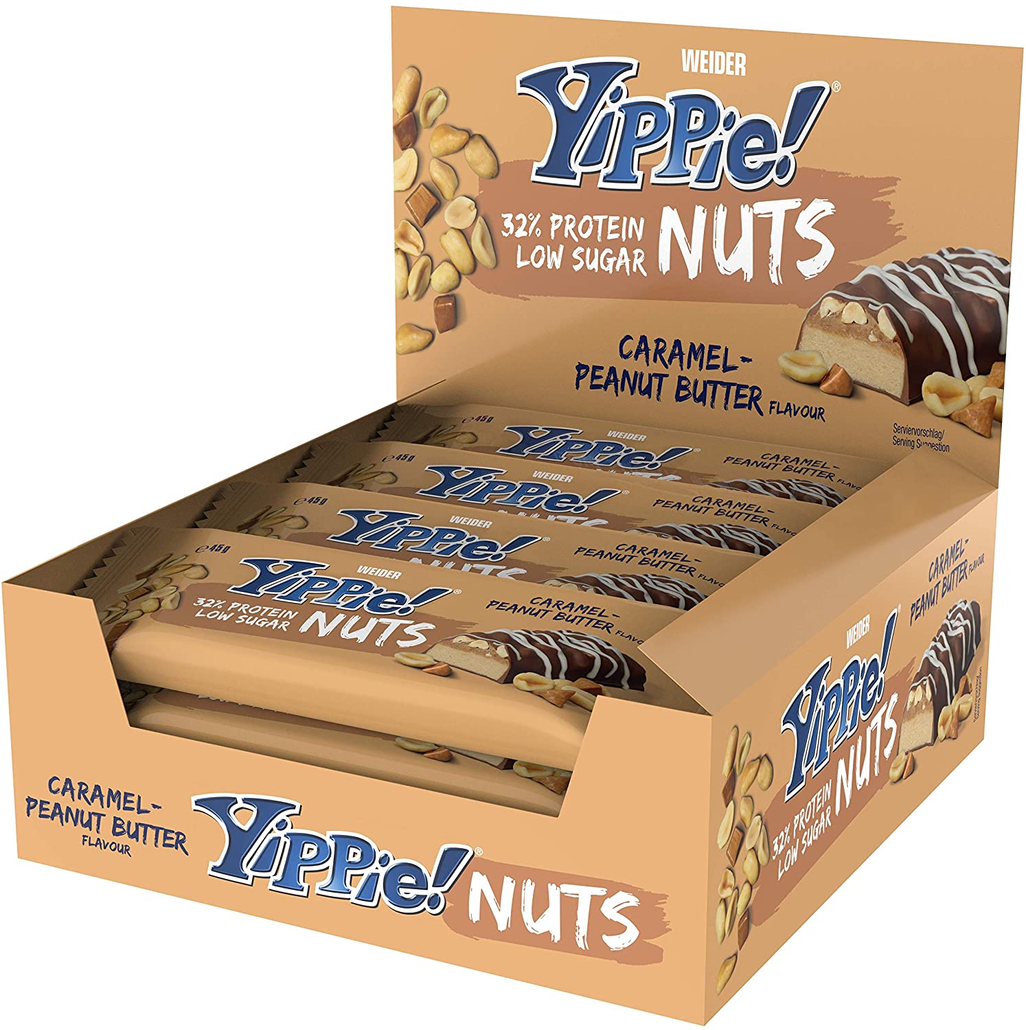 Weider Yippie! Nuts, Caramel-Peanut Butter - 12 bars (45 grams)