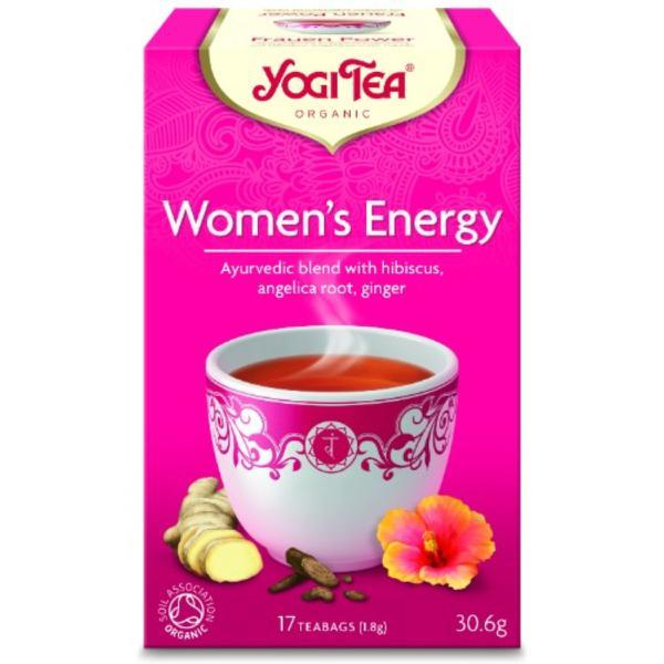 Yogi Tea Organic Women's Energy - In the interaction of masculine and feminine energies in our lives, feminine power was sometimes underestimated in the past. Women's Energy is an enthusiastic and deliciously lively tea thanks to fruity hibiscus, raspberry leaf and angelica root extract, letting us live up to all the wonderful assets within our body. The essence of this tea is: 'Feminine power'.