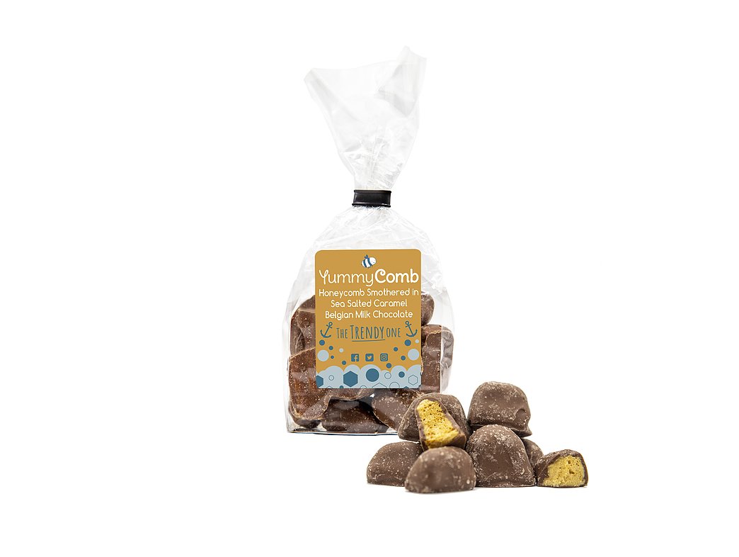 A bundle of bite size Honeycomb nuggets, smothered in Sea Salted Caramel Belgian Milk chocolate. We named this one the Trendy One. Each Honeycomb nugget is coated generously with the finest Belgian Chocolate.